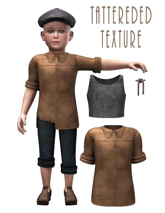 The adorable street urchin sings for his supper. His clothes are tattered and torn and too big for his small frame but he is sure in his singing voice.