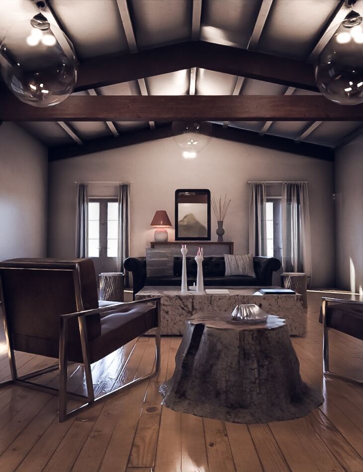 Oakland Living Room is a light-filled room that features nature-acquired pieces. It's peaceful and very relaxing.