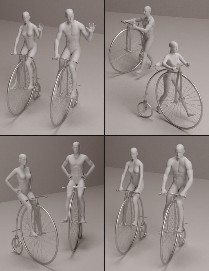 This set consists of riding, walking, resting and crashing poses for Michael and Victoria 5 using the old school Draisine and Penny-farthing bicycles.