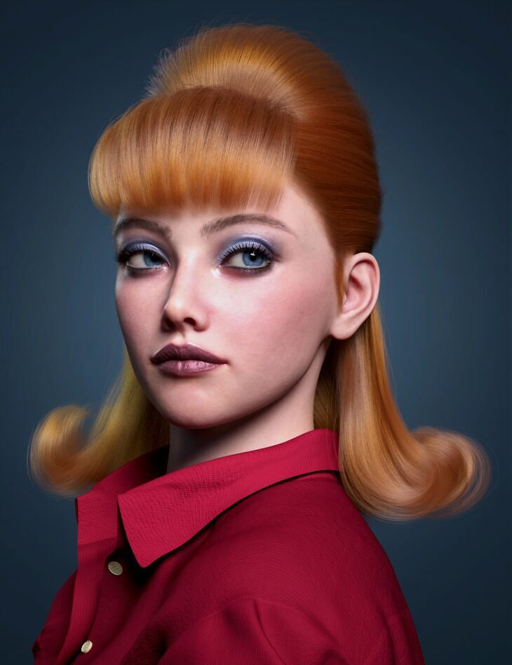 Olivia Hair for Genesis 9 is a cute 60s hairstyle perfect for both contemporary as well as retro scenes.