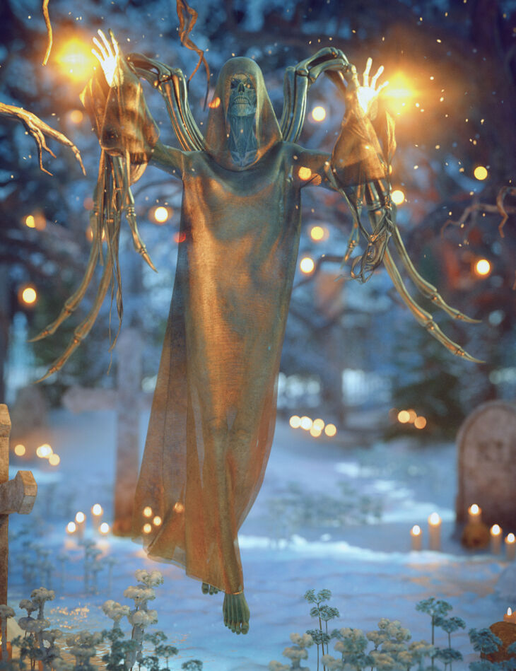 Omen of Futurity for Genesis 8.1 Female is a skeletal figure that's perfect for hauntingly surreal scenes. Whether living dead or translucent ghost, this character is guaranteed to terrify anyone cursed with the misfortune of meeting them.