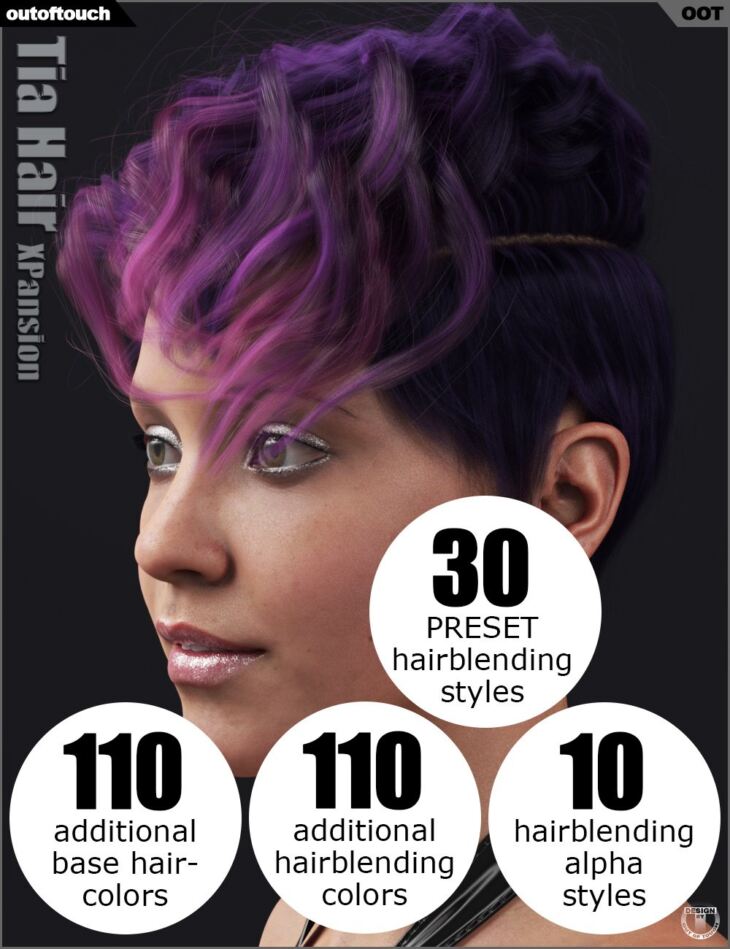 This texture expansion pack brings you a huge palette of new hair colors, preset hair blending styles and new hair blending overlays for Iray.