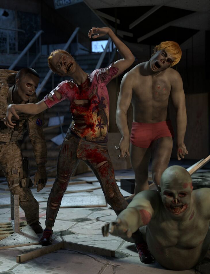 Oso Zombie is a suite of shapes, geografts, and materials to alter a figure into a variety of undead. It can also be used for injured people, and combines well with other figures.