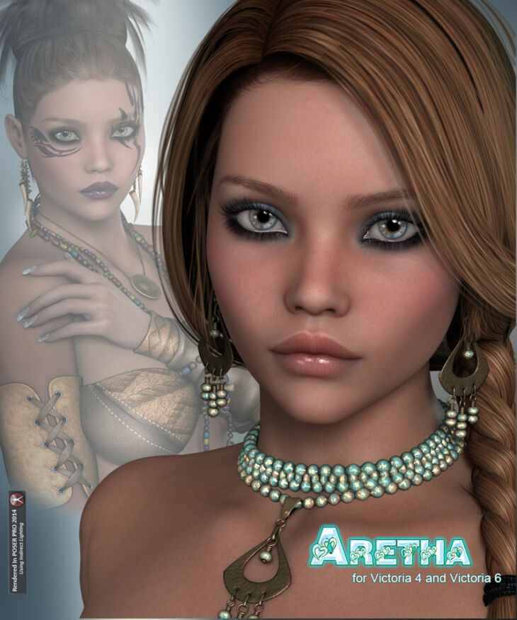 Aretha is a versitale high quality character for Victoria 4 and morphs++ and for Genesis 2 Female, Victoria 6.