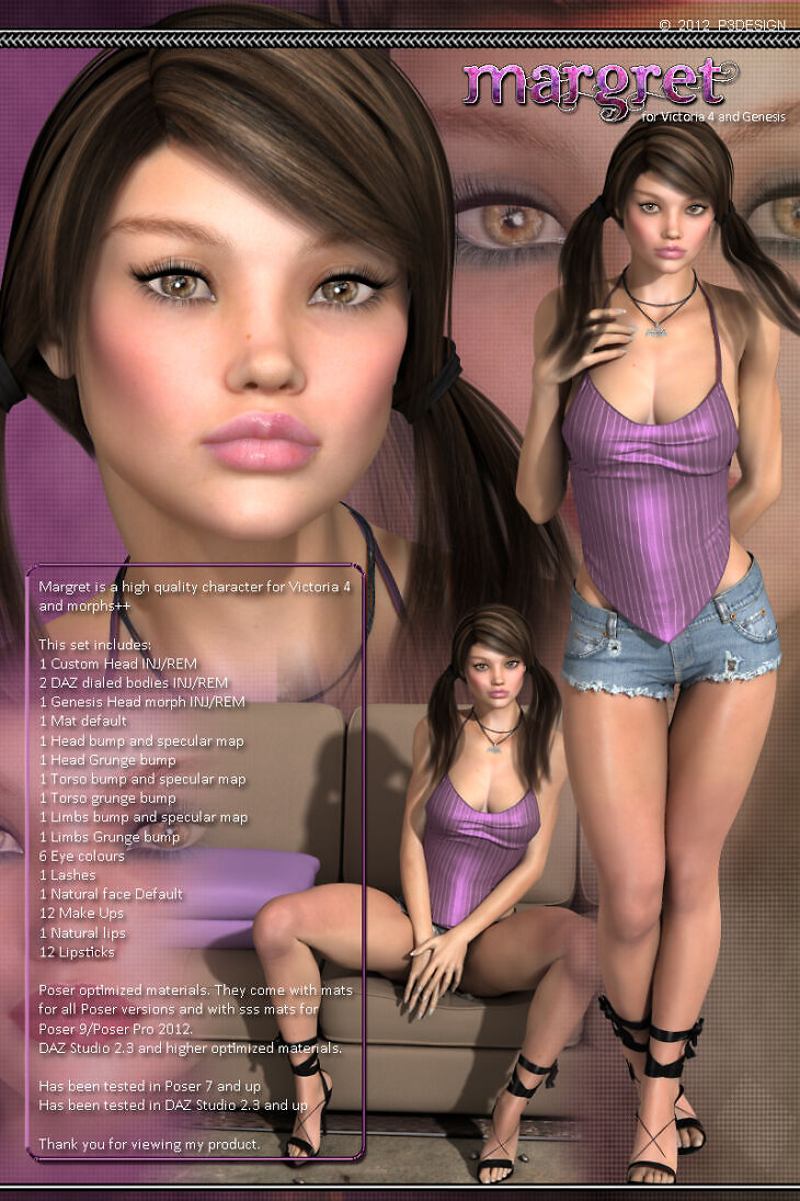 Margret is a high quality character for Victoria 4 and morphs++, and Genesis.