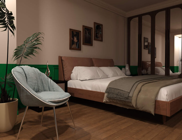 Elegant mirror-panel wardrobe that adds depth and realism.