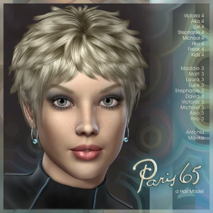 Paris 65 Hair. Any of the supported figures: V4, A4, G4, S4, M4, H4, Kids4, Freak4, Gen 3 figures, Antonia, Mavka.