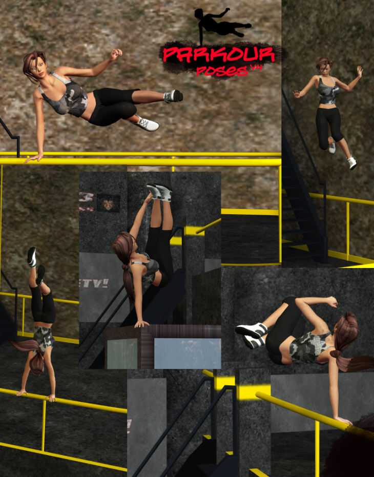 51 Parkour, Free Running and acrobatic poses. For Victoria 4.2 (results may vary slightly when applied to Aiko, Stephanie, The Girl...)