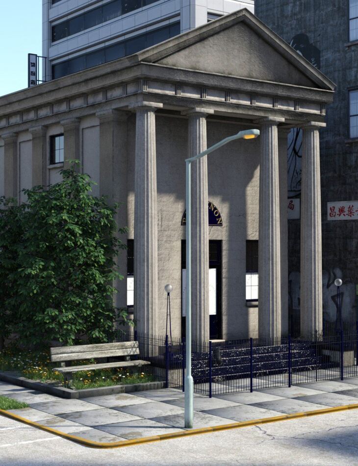 A contemporary club/bar with complete classical-style exterior and a choice of interior layouts, along with a selection of props.