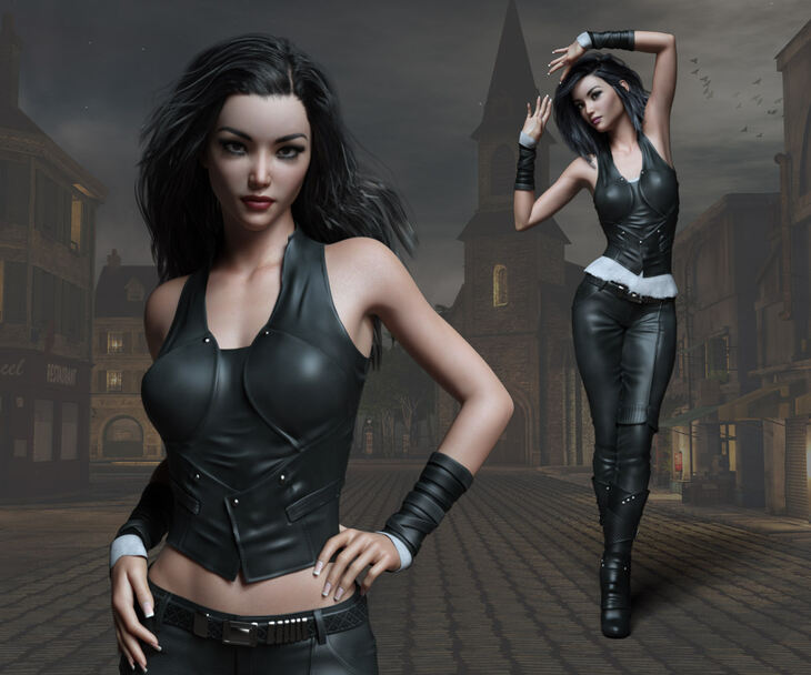 Peace Keeper is the perfect outfit for all your femme fatales, female assassins, or kick ass heroins. It is sexy black leather and form fitting with the coolest high heel boots that are sexy yet practical.
