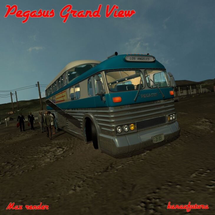 High-poly model of a vintage-retro american bus, in formats Obj, Max (3dmax9 and above) and Poser prop.