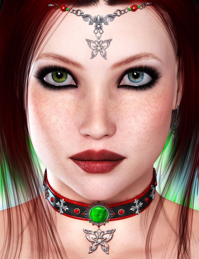 A pentacles inspired accessories, jewelry collection of earrings, neck adornments, rings, circlet for V4, A4, Anastasia (Alyson2), and Miki 4.