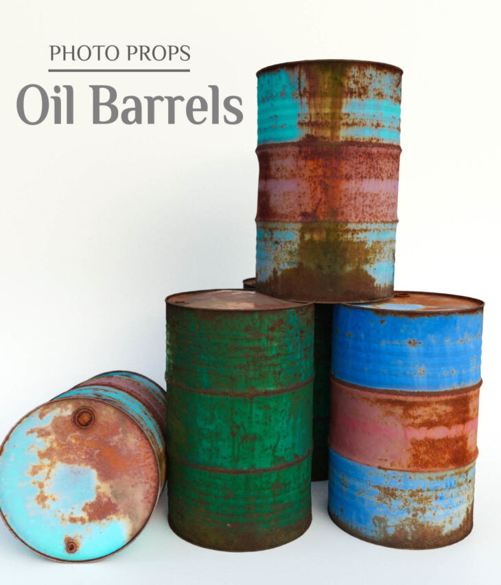 2 high resolution nicely dirty, rusty and grungy oil barrels with photo realistic textures. Now updated with full PBR textures and materials (Color, Height, Metal, Gloss, Roughness) Full 4K textures for ultimate sharpness and high resolution renders.