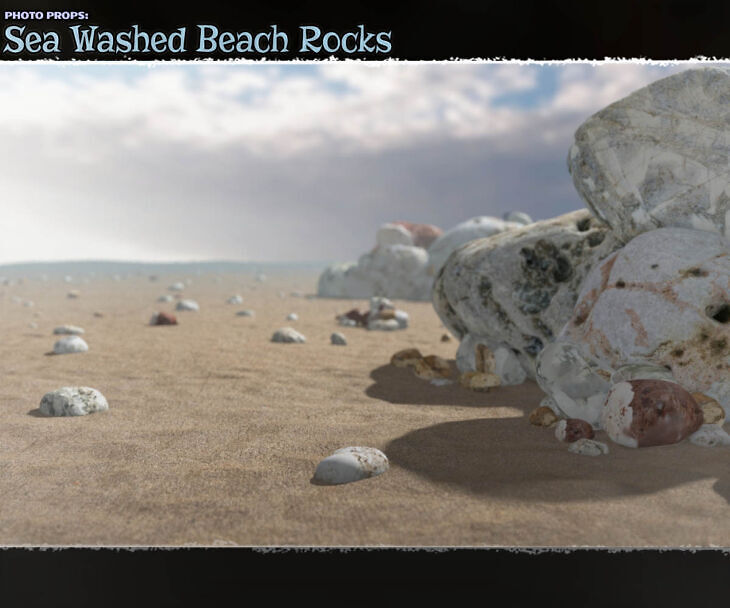 Sea Washed Beach Rocks is a simple scene based on 7 highly photo ralistic reocks, that have been adjusted in various variations and presets for simplified use.