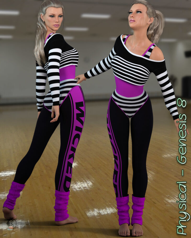 Get in shape and look fabulous while doing it in this brightly colored, 80s inspired Aerobics set. Shirt and leg warmers includ dforce and can be used with or without dforce for added realism.