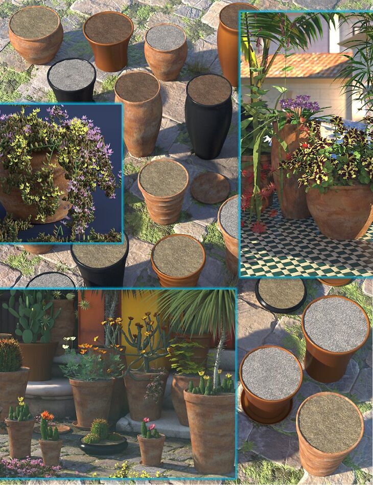 Plant Pots are always handy! Whether it's to add a realistic pot to a windowsill or a group to act as an interest point in a larger scene, they can be used to show off your digital foliage to its best effect!