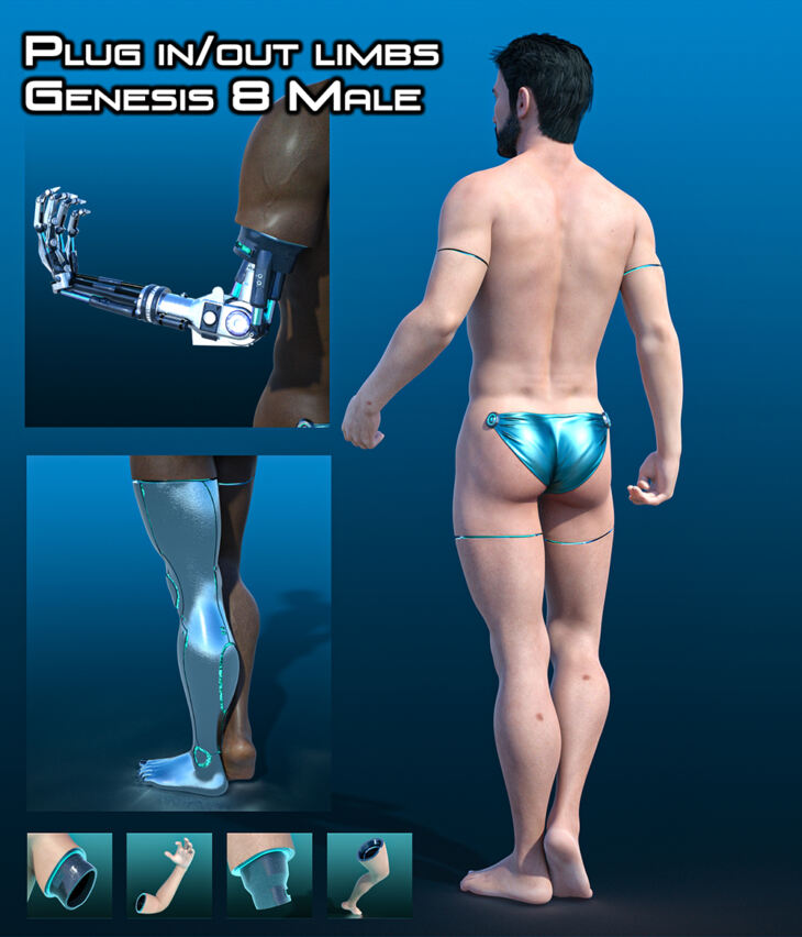 PlugIn limbs for Genesis 8 is a set of 8 geografts. It contains 4 limb caps and 4 limbs.