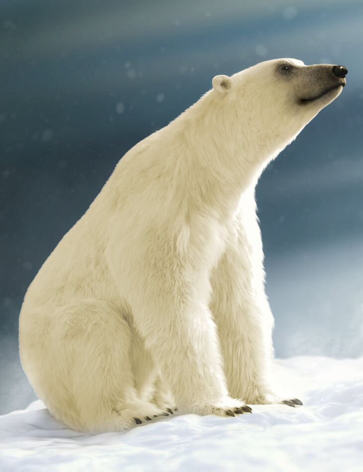 Polar Bear 2 by AM has been finely reproduced for Daz Studio, complete with controls, poses, and fur variations.