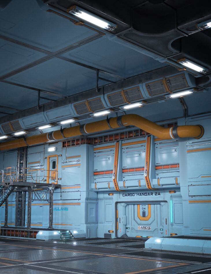 Polaris Hangar a sci-fi style hangar. The model is an addition to the product Polaris corridor.