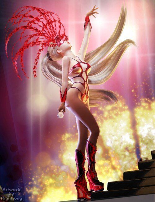 Inspired by the daring and flashy costumes of modern female performers, this outfit will enable your V4 to take on any occasion or scene calling for an over-the-top, kick-ass outfit-- be it a rock concert, a Vegas show stage, Mardi Gras, or anything else.