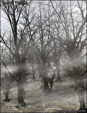 This set includes five poseable trees with three different ivy props for each tree, material presets for bark, leaves and ivy, specially customized for both Iray and 3Delight, as well as tint shaders to add a different hue to the foliage and presets for hiding and showing the roots.