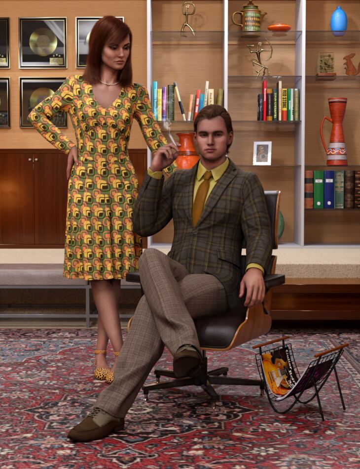 Required Products: Retro Apartment Props 1, Retro Apartment, Worldly Jones for Genesis 3 Male(s), FG Closet, Red Carpet Formal Outfit Clutch for Genesis 8 Females