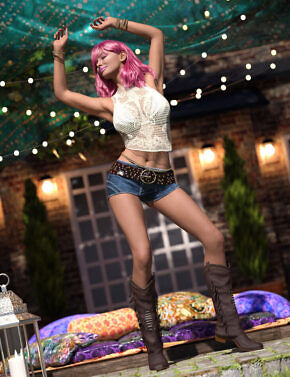 It comes with custom fits for many of the Genesis 3 Characters and Victoria 8 and can also be made to fit more characters with the use of Auto fit and the supplied Adjustment morphs.