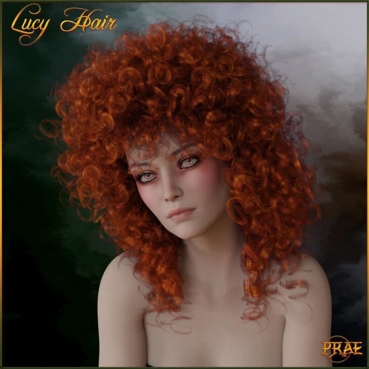 Lucy hair is a mass of messy curls. It comes with 20 natural and fun hair colours for Iray. This product is Iray only. There is a Genesis 8 Female and Genesis 8 Male version of the hair. It can also be made to fit more characters with the use of Auto Fit and the supplied Adjustment morphs.