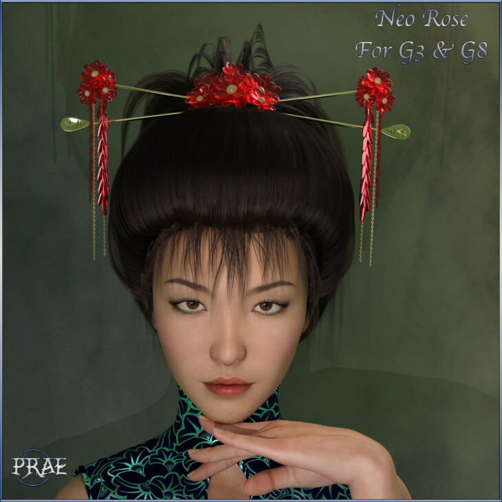 Neo Rose Hair is an Asian inspired fantasy hair style, it comes with 16 natural and fun hair colours for Iray. There is a Genesis 8 Female and Genesis 3 Female version of the hair.