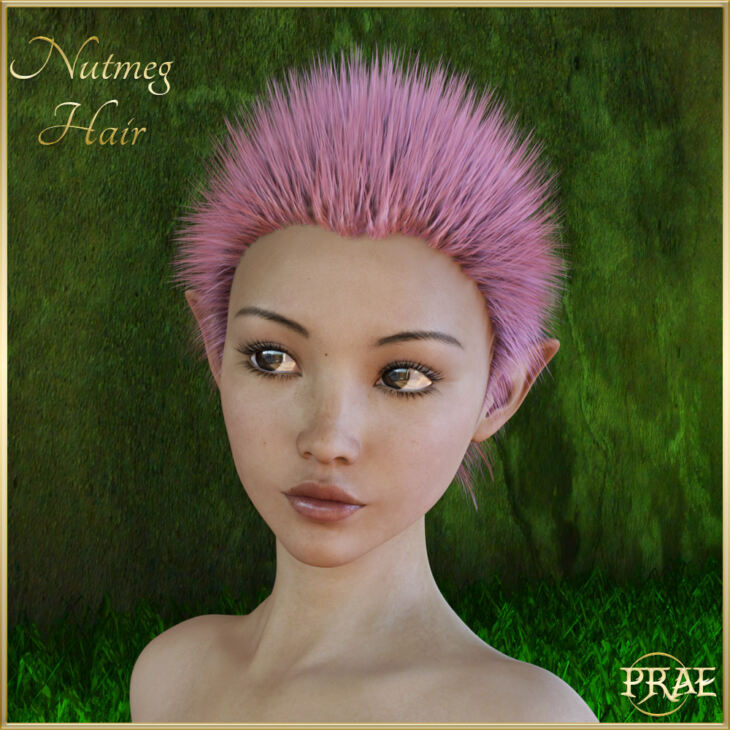 Nutmeg hair is a cute, spiky hair style perfect for all your fairies, pixies, elves and nature spirits. It comes with 18 natural and fun hair colours for Iray.