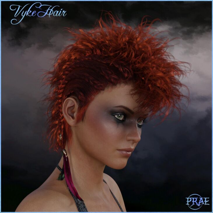 Vyke hair is a Viking inspired mohawk hair style. It comes with 25 natural and fun hair colours for Iray. This product is Iray only. There is a Genesis 8 Female and Genesis 8 Male version of the hair. It can also be made to fit more characters with the use of Auto Fit and the supplied Adjustment morphs.