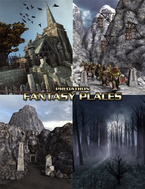 Four great looking environments perfect for all your fantasy scenes. Includes Archards Ossuary, The Dead Forest, Gateway to Skull Mountain and Dark Mountain Pass.