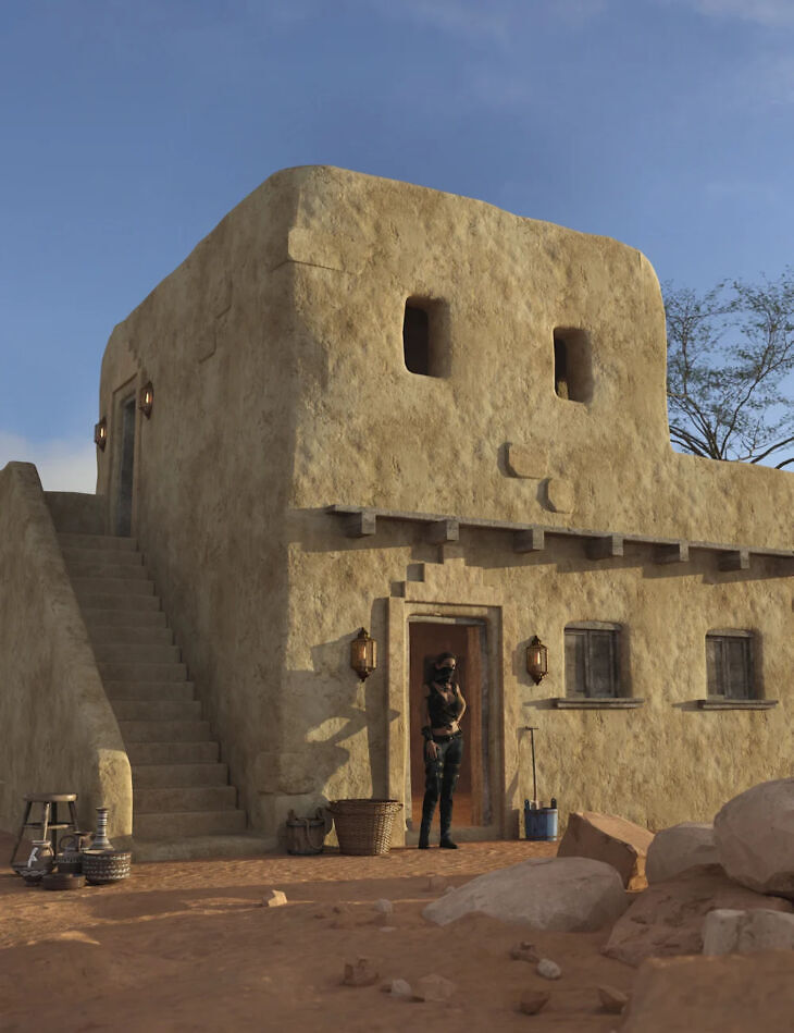 Primitive Houses 2 is a collection of 5 more simple mud buildings, hardened by the desert sun.