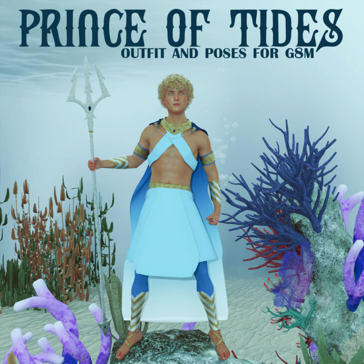 This product contains 1 pair of arm bracers, 1 pair of arm bands, 1 belt + skirt (dForce), 1 bikini shell, 1 cape (dForce), 1 shirt, 1 pair of trousers, 1 trident, 12 poses and MATs.