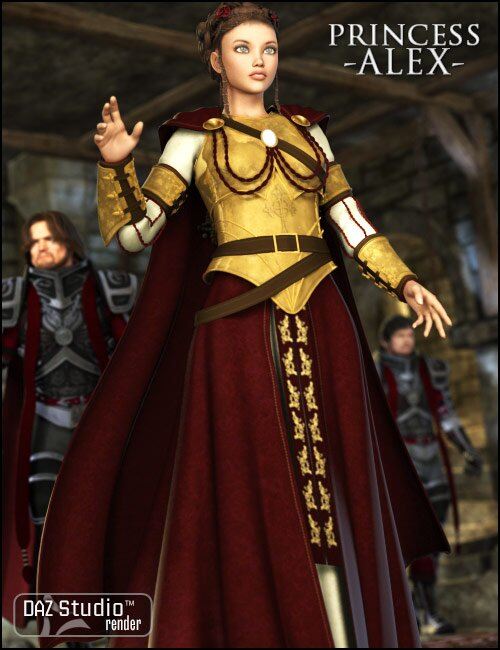 Princess Alex is a fully featured warrior princess outfit for Victoria 4. The outfit contains the dress, chest armor, cape and bracers. Features fits for Morphs++, Aiko4, Stephanie 4, The Girl 4 and the Elite Body Shapes.