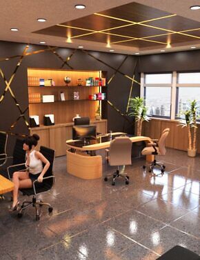The office comes with a desk, executive leather chair, filing cabinets, guest chair, bookshelves, book sets*, assorted office desk props and document frames for the walls.