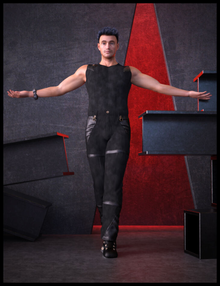 The PunkRaveM Outfit for Genesis 8.1 Male is fit for a rebel!