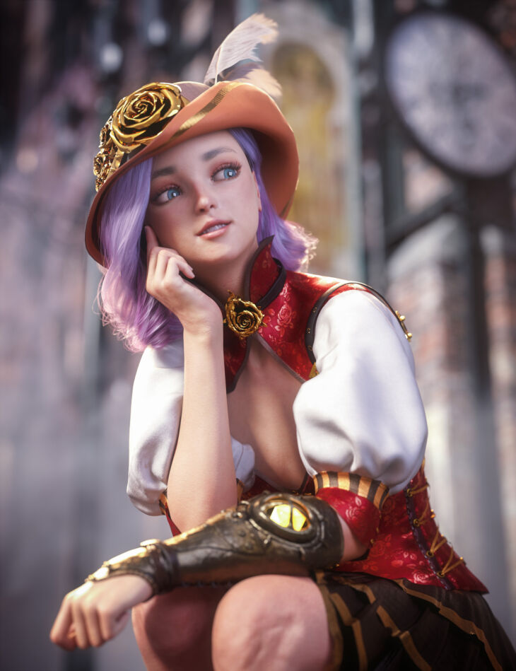 Meet Qun, a lively young woman with custom features and expressions that make her a unique addition to steampunk, sci-fi, or anime-style scenes. Match her to your favorite outfits with several eye, lip, and makeup material presets, or stick with a more natural look.