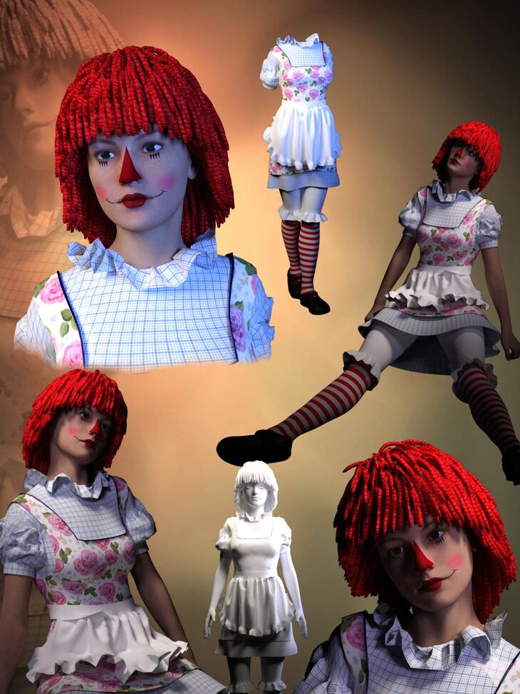 The Raggedy Sandy Dress for Genesis 2 Females is the perfect outfit for creating Dolls in Daz Studio.