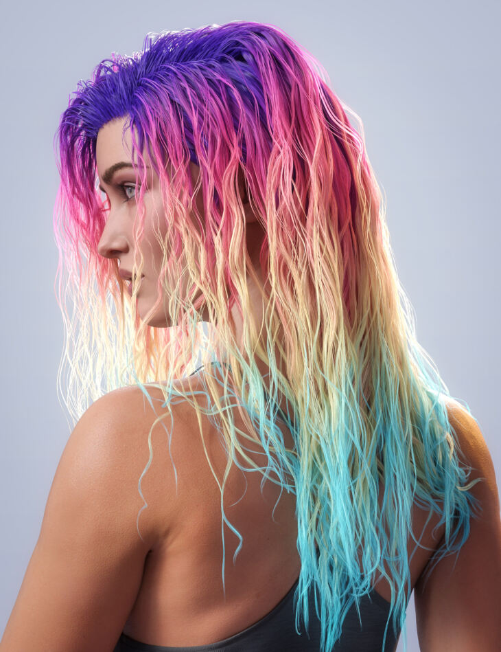 Rainbow Hair - Iray Shaders includes 9 high-resolution, universal rainbow hair shaders to create a beautiful blend of multi-colored hairstyles.