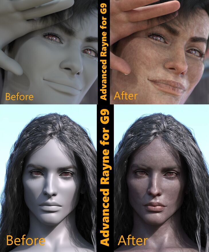 Rayne, like my other Advanced Bases, consists of morphs forming a unified sculpted detail preset, focused on injecting realism into your characters.