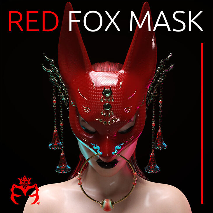 The Red Fox Mask is designed to be both striking and versatile, suitable for Genesis 3, Genesis 8, Genesis 8.1, and Genesis 9 characters of any gender.