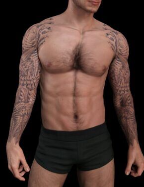 Redz Kaz Character, Hair, and Tattoos Bundle includes the Redz Kaz HD character, dForce Redz Kaz Hair, and Redz Kaz Tattoos.