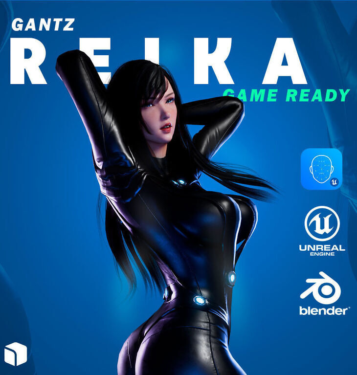 3D model for Reika Shimohira from Gantz series. This model is available only in Blender (.blend) format, FBX and Unreal Engine 4 (Not included).