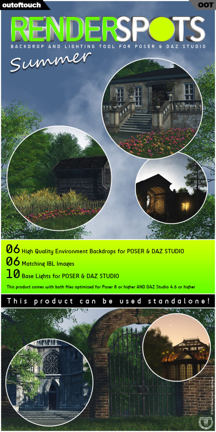 With RenderSpots you can easily bring your Poser scene into different places and environments. RenderSpots is a backdrop tool coming with high quality digitally created environments and matching IBL images.