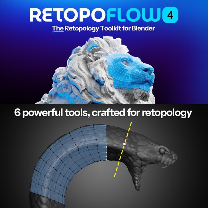 Retopoflow is a comprehensive set of tools that help make quick work of creating custom, clean, mid or low polygon meshes on top of high resolution sculpts or scans.