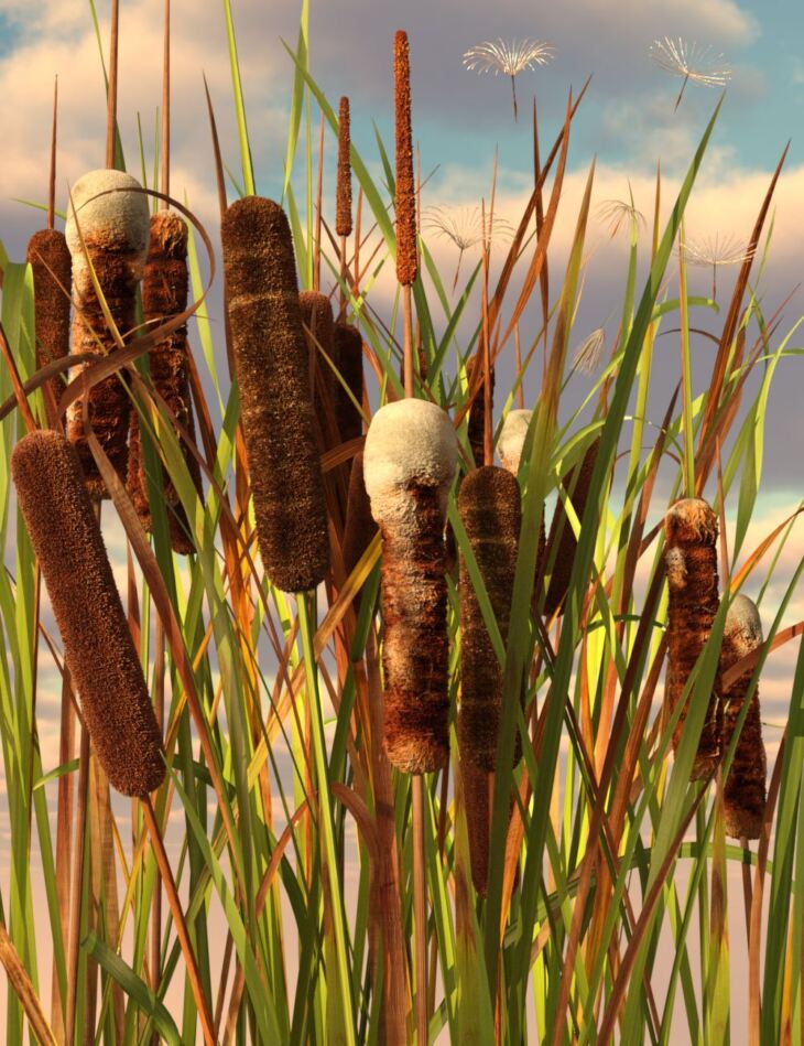 Cattails are found throughout the world in coastal regions, riverbanks, and marshy meadowlands, growing from 5 to 10 feet in height, in water up to 3 feet deep. Rigged Cattail Reeds brings them to your shores with fully poseable stems and leaves!