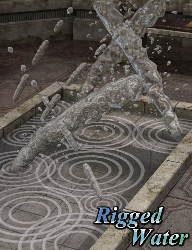Rigged Water for DAZ Studio comes with eight rigged water figures, four morphing props and a superposing water hose. Three water shaders with various refraction options and a blood material are included as well.