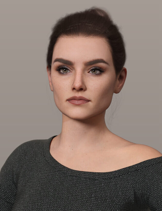 Raya features refined facial anatomy, lifelike skin shading, and expressive details, making her ideal for both close-up renders and animation projects.
