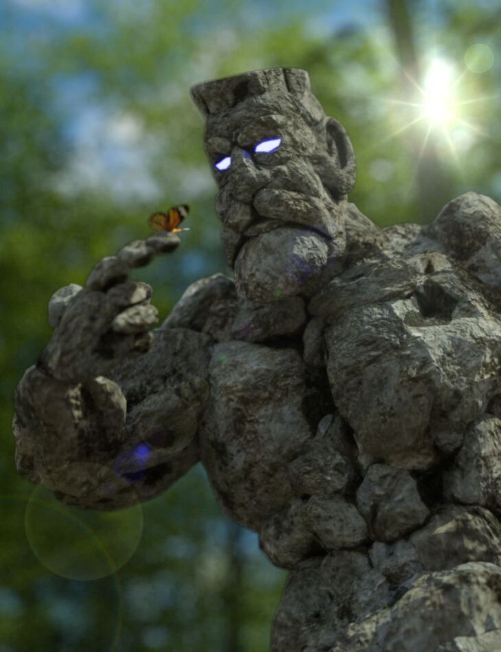 He can be used in your fantasy or sci-fi rendered artwork. Includes a bonus stone shader to apply to your props to match your Rocky. Does not include any props.